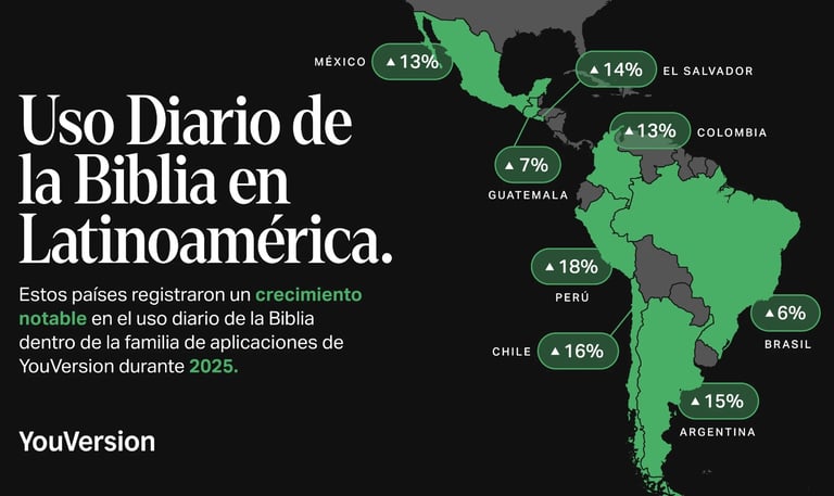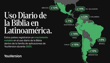 Los gráficos que ilustran el Versículo del Año de YouVersion y las cifras de uso de su familia de aplicaciones bíblicas en 2025 pueden encontrarse aquí.