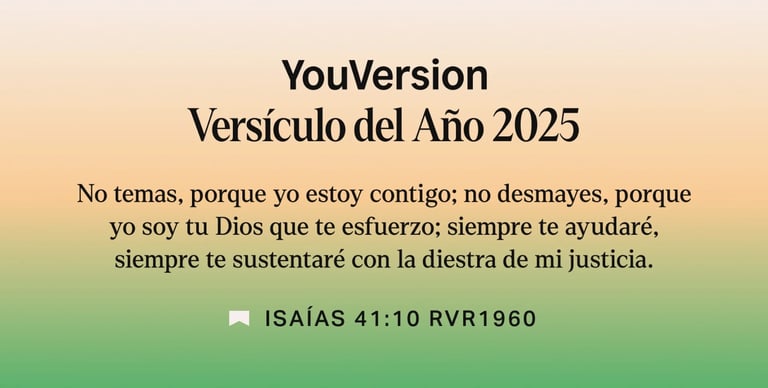YouVersion, creador de las aplicaciones bíblicas más descargadas del mundo con más de mil millones de instalaciones, anunció que Isaías 41:10 fue el versículo más leído, compartido y buscado de 2025. Es la cuarta vez en seis años que el pasaje encabeza la lista, una señal del profundo anhelo de esperanza en medio de la incertidumbre global.